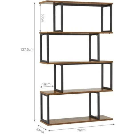 1.DESIGN INDUSTRIEL: La bibliothèque à 5 niveaux avec un design industriel s’adapte à merveille à différents styles de décoration de votre maison. La bibliothèque en forme de S est plus belle et peut rendre la décoration de votre salon, chambre et bureau plus personnalisée.