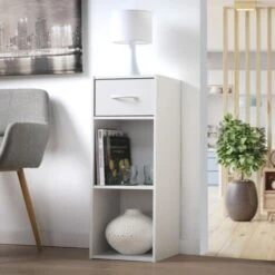 Étagère Bibliothèque Stevie 105,5x19x136,5cm – Etagere Pour CD, Meuble Pour CD, Meuble Range Pour CD