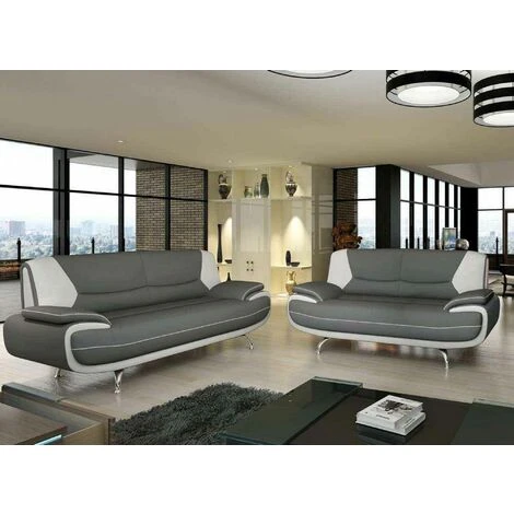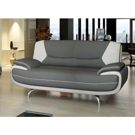 Design audacieux et confort absolu, notre canapé 2 places bgris et blanc MARITA séduira les amoureux de déco les plus exigeants. Grâce à ses lignes harmonieuses, ses courbes arrondies, son duo de couleurs contrasté et les pieds en acier chromé, le canapé 2 places MARITA comblera toutes vos attentes. Offrez-vous le canapé qui a de l’allure ! Le revêtement en simili cuir de haute qualité est agréable au toucher, tout en étant facile d’entretien. Idéal pour les grandes familles, les petits budgets ou toux ceux qui ne veulent pas passer trop de temps à entretenir leur canapé. Assurez-vous le confort maximum pour vos soirées famille, entre amis ou devant la télé avec le canapé 2 places MARITA ! L’assise est en mousse haute résilience, densité 30kg/m3, ses renforts au niveau des reins son particulièrement étudiés pour apporter un confort supplémentaire. Existe en 3 places, 2 places ou canapé d’angle 5 places. Existe en plusieurs coloris : noir et blanc, gris et blanc, noir et rouge, blanc et noir, marron et blanc. Dimensions 3 places : Largeur : 190 cm / Profondeur : 87 cm / Hauteur : 89 cm Dimensions 2 places : Largeur : 159 cm / Profondeur : 87 cm / Hauteur : 89 cm Dimensions canapé d’angle XL : Largeur : 216 cm / Profondeur : 216 cm / Hauteur : 89 cm Structure en bois, revêtement en simili cuir, pieds en acier chromé 13 cm de hauteur.