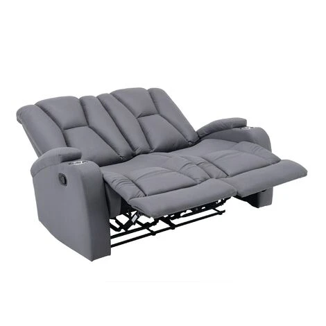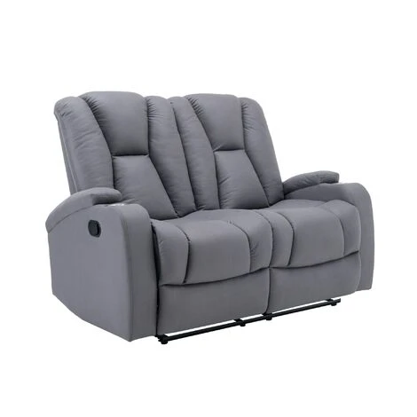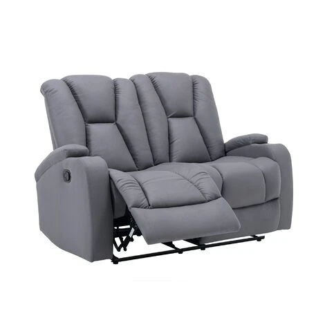 Laisser vous envoûter par le canapé relax 2 places relax manuel en tissu en microfibre gris CLARENCE.