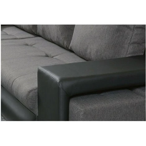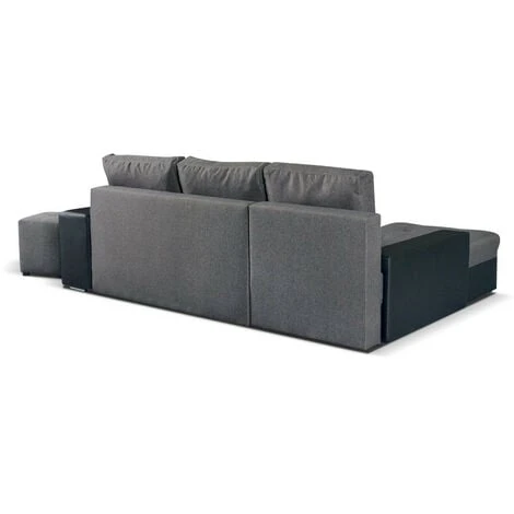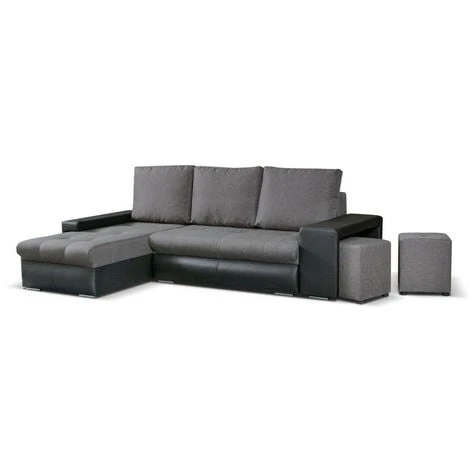 Canapé d’angle convertible lit noir et gris + 2 poufs – Simon