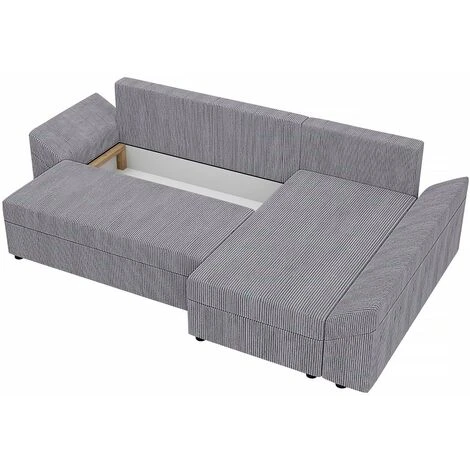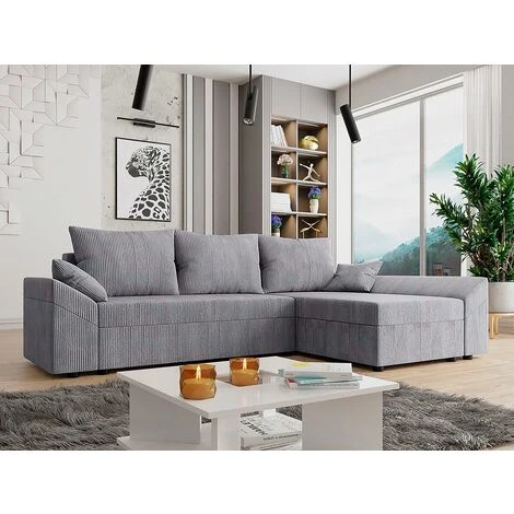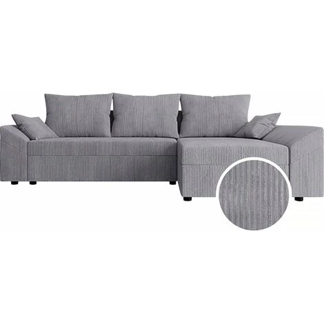Descriptif : Canapé d’angle Dante L en velours côtelé – 248 x 139 x 80 cm – 3 coussins de dos – 2 coussins d’accoudoirs – Gris.