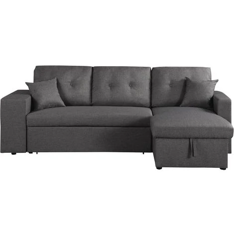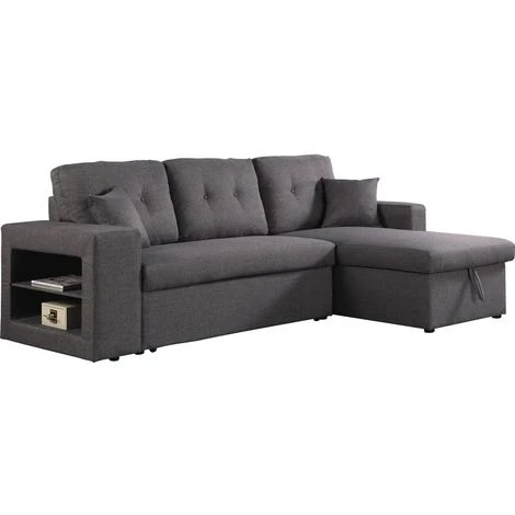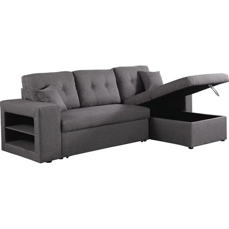 Joignez le fonctionnel avec l’esthétique grâce à ce canapé d’angle convertible en Lin ! Ce canapé moderne en lin est doté d’étagères intégrées sur le côté qui sont conçues pour offrir un gain de place précieux et pourront accueillir des livres des magazines ou encore la télécommande de votre téléviseur. Offrant 3 vraies assises, ce canapé se démarque grâce à son design avec son revêtement en lin capitonné qui ajoutera une note d’élégance à votre intérieur. Ce canapé présente aussi l’avantage de pouvoir s’intégrer dans toute sorte d’environnement en y ajoutant une touche de convivialité grâce à ses lignes épurées et intemporel et ses coloris sobres. Descriptif : Canapé d’angle convertible Axel – Lin – Canapé: 233 x 146 x 86 cm – Couchage: 192 x 136 x 44 cm – Espace de stockage (méridienne) + étagère.