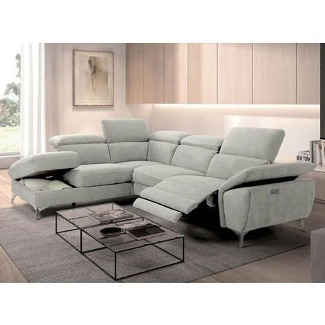 - Réf. fabricantltd-Santander Canapé d’angle gauche de relaxation électrique microfibre gris clair