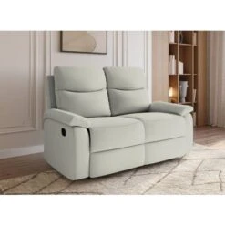 Succombez à notre canapé relax 2 places à commande manuelle en tissu gris clair JACOB.