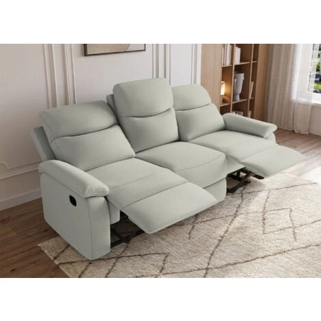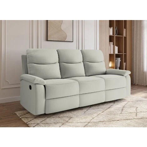Succombez à notre canapé relax 3 places à commande manuelle en tissu gris clair JACOB.