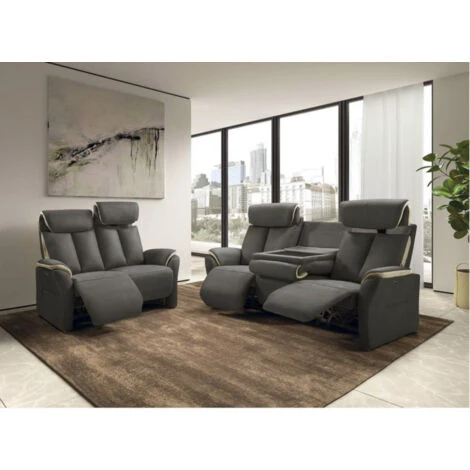 Canapé de relaxation avec dossiers, repose-jambes et appuie-têtes inclinables et relevables électriquement (hors assise centrale)