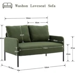 Canapé 2 Places,Fauteuil Salon Scandinave Cadre En Bois Surface En Tissu Lin,Gris Foncé – Meerveil