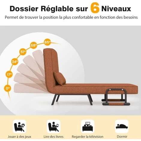 - 【Application multi-scènes :】Avec l’apparence élégante et la couleur simple, notre fauteuil-lit apportera une touche de charme et s’adaptera à différents styles de pièce. Il peut être utilisé dans le bureau, le salon, la chambre ou la chambre d’amis.
