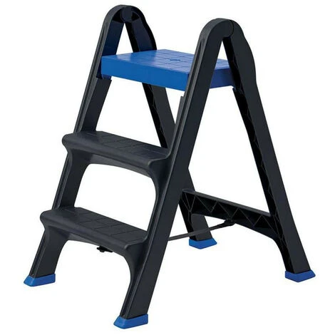 Escabeau 3 marches, stable, léger et solide, équipé de pieds antidérapants et d’un bloc de sécurité, charge maximale 130 kg, une fois fermé, il se tient tout seul, dans un espace minimum.