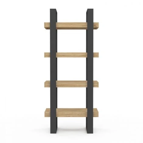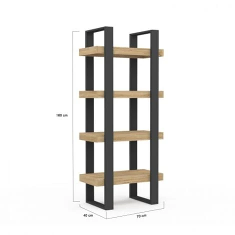 Descriptif de l’étagère 4 niveaux PHOENIXDonnez un esprit loft à votre intérieur avec notre étagère-bibliothèque 4 niveaux design industriel PHOENIX bois et noir.Ses formes simples et sobres apportent un look atelier à votre intérieur, et ses coloris passe-partout s’adapteront facilement à votre pièce de vie ou cuisine. Ambiance chaleureuse garantie !Esthétique, cette jolie bibliothèque trouvera idéalement sa place dans les intérieurs urbains et contemporains, mais aussi plus rustiques. Au-delà de son côté authentique et robuste, ses proportions généreuses en font une étagère fonctionnelle et gain de place qui pourra s’insérer dans les petits comme les grands espaces de vie.Les 4 tablettes larges maxi capacité vous permettront de disposer élégamment vos livres, objets de décoration, et boîtes de rangement. Entreposez vos affaires sur plusieurs étages pour organiser votre rangement !La matière et la couleur des étagères en particules de bois (PB épaisseur 1,5 cm) lui confèrent une véritable authenticité.La structure du meuble lui apporte une vraie stabilité et une véritable solidité. Avec ses pieds larges reliés entre eux, ce meuble de rangement ultra design vous propose robustesse et qualité pour accueillir votre vaisselle ou décoration.Sa structure à l’aspect massif est idéale pour un salon cossu. L’association des pieds noirs et du plateau en bois donne un effet bi-matière et apporte modernité et tendance dans votre intérieur.Conçue tout en hauteur, vous gagnerez de l’espace sur votre surface.Grâce à cette vitrine ouverte fonctionnelle, vos objets de déco et petites plantes d’intérieur sont mis en valeur !Laissez vous séduire dès maintenant par notre étagère 4 niveaux industrielle à petit prix !Dimensions de l’étagère 4 niveaux PHOENIXDimensions totales : Longueur 70 cm x largeur 40 cm x hauteur 160 cmÉpaisseur du plateau bois : 15 mmMatériaux : Particules de bois mélaminésRetrouvez toute notre collection PHOENIX sur notre boutique en ligne