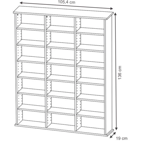 Vous pourrez régler les 18 tablettes en hauteur de sorte à pouvoir ranger des boîtes de CD ou DVD de différentes hauteurs de manière optimale dans les compartiments, sans laisser de chance à la poussière de s’installer.