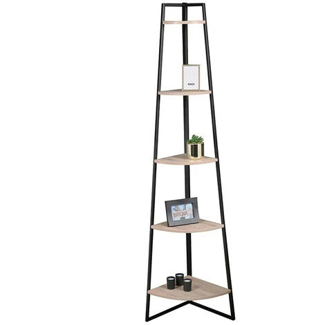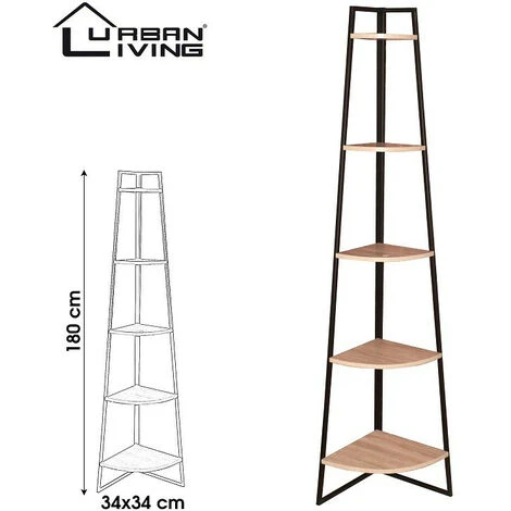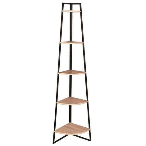 Étagère d’angle de la collection Désert. Esprit factory pour être dans l’air du temps. Composée de 5 étagères d’angle en fibres de bois montées sur une structure en acier. A monter soi-même. Coloris naturel et noir. En acier et fibres de bois (MDF). Dimensions 34×34 cm, hauteur 180 cm. Poids 6.5 kg.