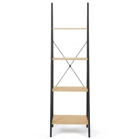 Descriptif de l’étagère échelle DETROIT design industrielDonnez une touche industrielle à votre intérieur avec notre étagère échelle design industriel DETROIT bois et métal noir.Son style moderne, contemporain et ses lignes sobres offriront à votre salon, bureau, entrée ou cuisine un esprit factory !De quoi créer une ambiance ultra chaleureuse type loft, cosy et tendance ! Esthétique, cette jolie étagère-bibliothèque trouvera idéalement sa place dans les intérieurs urbains et contemporains, mais aussi plus rustiques.Les 4 tablettes larges maxi capacité vous permettront de disposer élégamment vos livres et objets de décoration. Entreposez vos affaires sur plusieurs étages pour organiser votre rangement !La matière et la couleur des étagères en particules de bois (PB épaisseur 1,5 cm) lui confèrent une véritable authenticité.La structure du meuble, en métal noir (épaisseur des tubes 2 cm x 2 cm), lui apporte une vraie stabilité et une véritable solidité.De jolis croisillons participent à l’esthétisme de la structure.Conçue tout en hauteur, vous gagnerez de l’espace sur votre surface.Grâce à cette étagère fonctionnelle au design original en forme d’échelle, vos objets de déco et petites plantes d’intérieur sont mis en valeur !Laissez vous séduire dès maintenant par notre étagère-échelle industrielle à petit prix !Dimensions de l’étagère échelle DETROIT design industrielDimensions totales : L. 50 x l.40 x H 170 cmLongueur des planches : 46 cmLargeur des planches du haut vers le bas : 11 cm, 19,5 cm, 27,8 cm, 36 cmEpaisseur des planches : 1,5 cmRetrouvez toute notre collection DETROIT sur notre boutique en ligne