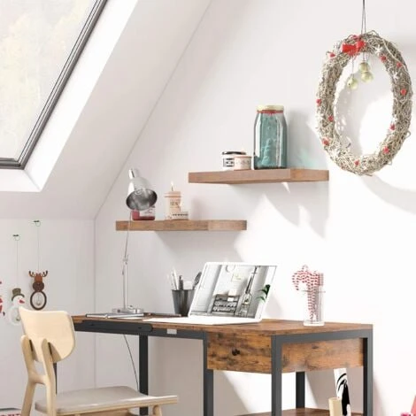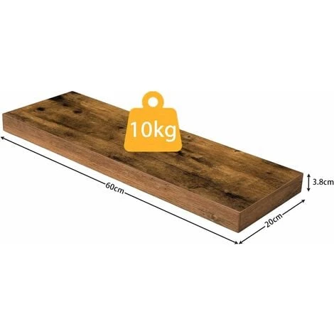 - EXCELLENTE QUALITÉ : Chaque étagère mesure 60 x 20 cm, est fixée par un solide cadre en fer à deux tubes. Épaisse de 3,8 cm, chaque tablette flottante supporte jusqu’à 10 kg. Vous pouvez donc y placer avec audace vos cadres photos, trophées et objets de décoration