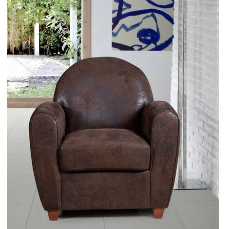 Résolument vintage, canapé recouvert d’un tissu imitant le vieux cuir usé. Canapé 2 places. Mousse PU haute densité 25 kg/m3. Pieds en bois, à monter soi-même. Hauteur d’assise 45 cm. Tissu 100 % pvc, coloris vieux cuir usé. Assise et dossier en mousse PU sur sangles élastiques. Structure en bois massif (pin) et fibres de bois (MDF). Dimensions 78×80 cm, hauteur 84 cm. Poids 30 kg.