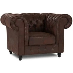 Succombez au design mythique de notre fauteuil chestefield en tissu microfibre vintage marron WILSTON.