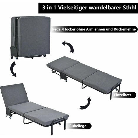 Fauteuil-lit convertible, Dossier inclinable à 6 positions, Fauteuil pliant avec coussin en lin, Sans accoudoirs, Canapé de loisirs pour maison ou bureau, Blanc