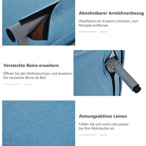 【Mise à niveau de la chaise de canapé-lit pliante】Conception pliable avec des performances polyvalentes 3 en 1. Selon vos différents besoins, il peut être facilement transformé en canapé rembourré, en salon décontracté ou en lit confortable. La housse en lin est respirante et amovible pour un nettoyage facile.