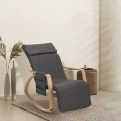 Fauteuil à Bascule En Bois Design Scandinave Avec Repose-pieds Réglable Odense Couleur: Gris