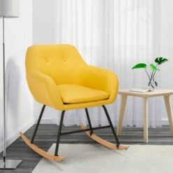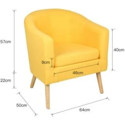 Fauteuil Scandinave En Tissu-Fauteuil Pieds Bois Hévéa Massif-Tissu Effet Feutrine 64*60*70cm Jaune
