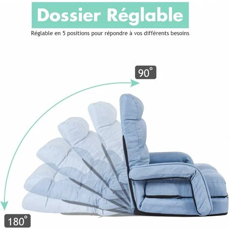 - Dossier réglable à 5 niveaux : L’inclinaison du dossier du fauteuil convertible est ajustable. Il y a 5 niveaux d’inclinaison, de 90 degrés à 180 degrés. Le fauteuil peut être changé d’un fauteuil en un lit pour un repos temporaire. Vous pouvez trouver l’angle d’inclinaison qui vous convient en l’ajustant, ce qui le rend plus confortable à utiliser.