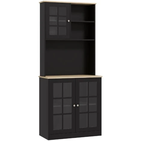 – Armoire de cuisine vitrine design contemporain bicolore noir chêne clair idéale pour sublimer votre intérieur