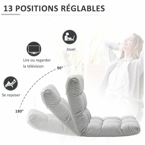– Fauteuil paresseux capitonné coloris gris clair : style contemporain idéal pour sublimer l’espace intérieur de votre choix : salon, chambre, bureau, salle de jeux, etc.