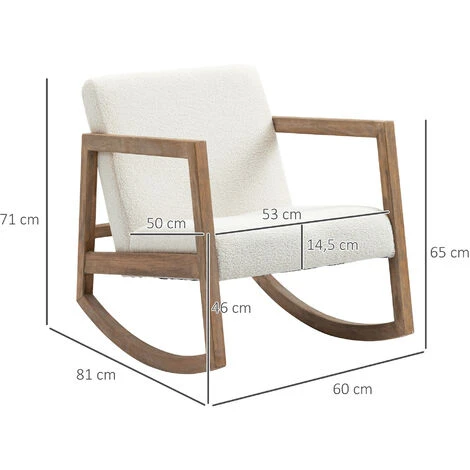 – Fauteuil lounge à bascule avec structure en bois d’hévéa et coussin d’assise dossier effet peau de mouton idéal pour plonger votre intérieur dans une atmosphère nordique