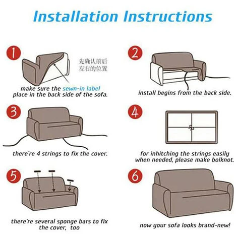 - 1. La housse de canapé est faite d’un matériau élastique avec une excellente élasticité.
