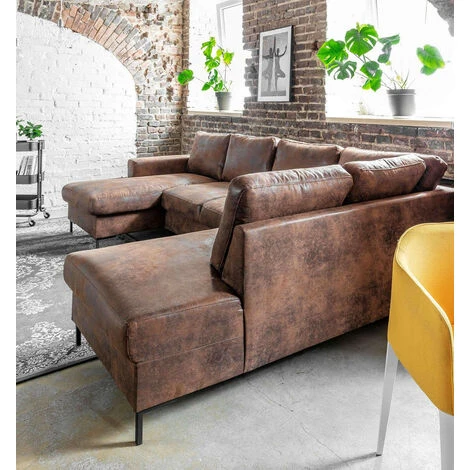 Vous désirez donner un style factory à votre loft façon usine ancienne ou vous voulez décorer votre salon dans le style industriel rétro ? Ce canapé panoramique Lilly vintage sera alors la pièce maîtresse de votre pièce à vivre grâce à son revêtement en microfibre vieilli et à ses pieds en métal et de couleur noire mat. Imaginez-le dans une pièce habillée de murs avec briques apparentes, accompagné d’une table de salon métallique et de luminaires en métal ? Attention, vous allez craquer !