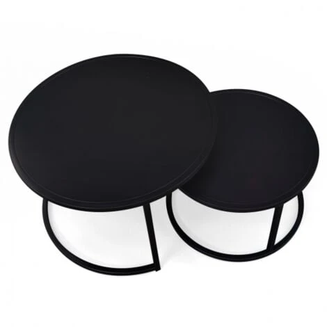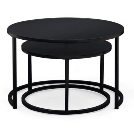 Que votre déco soit urbaine, classique ou contemporaine, soyez certain que ce lot de tables basses rondes s’y fondra parfaitement. Les plateaux en métal noir mat offrent un design industriel authentique à ces tables de salon. Leurs lignes sobres et épurées font d’elles un élément de décoration à part entière, qui s’intégrera facilement à votre intérieur. Esthétiques, ces jolies tables de salon DAVIS au design industriel trouveront idéalement leur place dans les intérieurs urbains et contemporains, mais aussi plus rustiques. Le coloris noir mat de la structure et du plateau habillera avec élégance votre intérieur.Fonctionnelles et pratiques, ces tables basses gigognes rondes style industriel sont imbricables, vous pouvez les moduler à votre guise, selon vos envies. L’une à côté de l’autre pour un apéro convivial entre amis ou bien l’une sous l’autre pour un gain de place maximal !Dans votre chambre, votre salon, ou même votre véranda, ces petites tables se glissent partout et peuvent même se dissocier pour meubler deux pièces différentes. Vous pourrez les utiliser en tables basses de salon ou en tables d’appoint. N’hésitez pas à vous servir des plateaux pour y disposer bougie, plante verte, lampe, objets de déco… pour un look 100% industriel !Bien stables sur leur structure en métal, ces tables gigognes rondes DAVIS vous assurent robustesse et solidité.Faites-vous plaisir grâce à ce lot de 2 tables basses gigognes rondes au style factory pour pas cher !Dimensions des 2 tables basses gigognes rondes métal DAVISDimensions de la petite table : Longueur 54 cm x largeur 54 cm x Hauteur 35 cmDimensions de la grande table : Longueur 70 cm x largeur 70 cm x Hauteur 45 cmÉpaisseur des tubes en métal : 1,6 cm x 1,6 cmÀ monter soi-mêmeCe modèle de tables basses gigognes existe aussi en format carré 60/70 cm ou en 40/45 cm.Retrouvez l’ensemble de notre collection industrielle sur notre boutique en ligne !