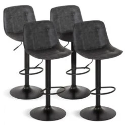 Avec leur esprit LOFT, ces 4 tabourets DENVER gris vintage s’accorderont facilement Ă votre intĂ©rieur. Leur design tendance apporte une touche de modernitĂ© autour d’une table haute.Conçues avec un pied en mĂ©tal noir et un revĂŞtement capitonnĂ© en polyester effet vieilli gris, ils vous offrent un confort d’assise ainsi qu’un bon maintien du dos.Les tabourets sont ajustables de 87,5 Ă 108,5 cm, vous pourrez ainsi adapter la hauteur en fonction de votre table haute. N’hĂ©sitez pas Ă mixer ces tabourets hauts avec d’autres chaises pour crĂ©er un ensemble design.Installez-les dans votre cuisine, salle Ă manger, ou dans la pièce que vous souhaitez, ces tabourets s’accordent facilement grâce Ă leur design Ă©lĂ©gant et sobre. Profitez de tabourets stables et confortables, le tout pour un petit prix !Dimensions du tabouret de bar DENVER gris vintageDimensions totales : Longueur 44 cm x largeur 47 cm x Hauteur 87,5 Ă 108,5 cmDimensions du dossier : 30 x 41 cmDimensions siège : 33 x 44 cmPoignĂ©e : 14 cmRepose-pied : 28 x 17,5 cmSocle du pied diamètre : 39 cmHauteur du siège : 58 Ă 79 cmHauteur du dossier : 87,5 Ă 108,5 cmĂ€ monter soi-mĂŞmeCe modèle de tabourets DENVER est disponible dans diffĂ©rents coloris : – Lot de 4 tabourets de bar DENVER marron clair vintage- Lot de 4 tabourets de bar DENVER marron vintage- Lot de 4 tabourets de bar DENVER noirs vintage- Lot de 4 tabourets de bar DENVER noirs vintage pied chromĂ©DĂ©couvrez l’ensemble de nos tabourets de bar sur notre boutique en ligne.