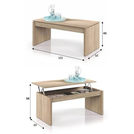 Cette table basse est élevable, sous son plateau élevable il y a un espace caché qui est parfait pour ranger toutes sortes de choses. C’est un meuble qui peut être combiné avec tout type de style décoratif. Réalisé en panneau de particules mélaminées d’une épaisseur de 30 mm et 15 mm selon les zones, chants PVC de 0,6 mm. Blocs ABS sur les pieds pour éliminer les bruits et les rayures. La table basse atteint une hauteur de 54 cm et peut supporter un poids de 5 kg lorsqu’elle est ouverte et jusqu’à 30 kg lorsqu’elle est fermée. Le creux du conteneur est de 6 cm de haut, 96 cm de large et 44 cm de profondeur. Mesures : Hauteur : 43 cm, Largeur : 102 cm et Profondeur : 50 cm. Instructions de nettoyage : utilisez un chiffon doux et légèrement humide, en le testant au préalable sur une zone peu visible du meuble. Ne pas utiliser de produits ammoniaqués, de solvants ou d’abrasifs. Expédition des produits au niveau de la rue