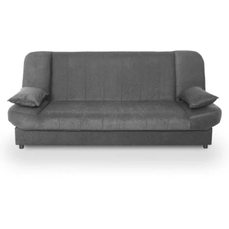 Notre canapé convertible se transforme rapidement en lit confortable grâce à son système d’ouverture clic clac. Il possède un coffre de rangement spacieux vous permettant de ranger couettes et oreillers.