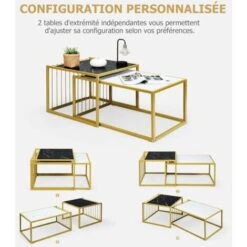 Lot De 2 Tables Basses Gigognes DAYTON 40/45 Plateau épais Effet Vieilli Design Industriel