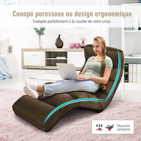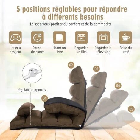 - ★DOSSIER PLIABLE EN 5 POSITIONS★Le fauteuil de sol est pliable, 90°-180°, vous pouvez régler l’angle selon vos besoins pour une stabilité optimale. Facile à déplacer. Vous pouvez utiliser ce produit comme un lit en le posant complètement à plat. Lorsque vous n’avez pas besoin de l’utiliser, vous pouvez le replier et le ranger facilement.