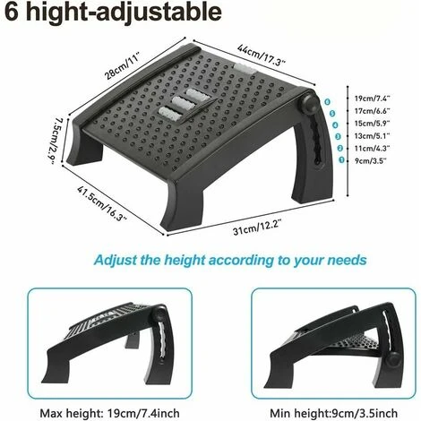 - [Angle réglable] : le repose-pieds ergonomique peut être ajusté à 6 hauteurs pour que le panneau forme différents angles avec le sol pour répondre aux besoins de chacun. Vous pouvez trouver le bon angle pour vous, puis le verrouiller.