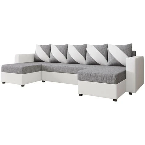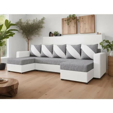 Disponible en coloris blanc/gris et noir/gris, le canapé panoramique Romy s’intégrera parfaitement dans votre pièce à vivre.