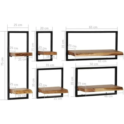 - Dimensions de l’étagère (l x P) : 21 x 25 cm ; 16 x 25 cm ; 31 x 25 cm ; 61 x 25 cm ; 46 x 25 cm