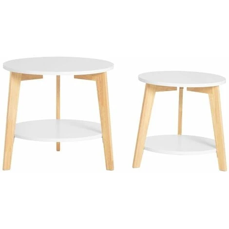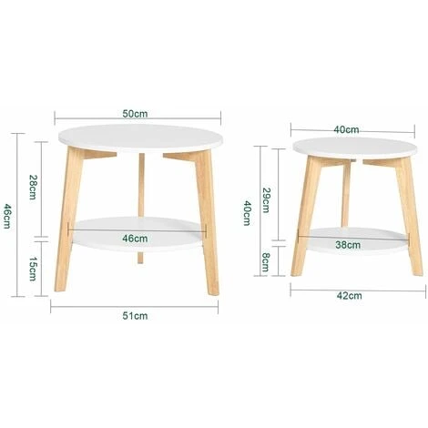SoBuy® FBT75-W Tables Basses Gigognes Table café Ronde Table d’Appoint Table Basse Ronde Guéridon – Set de 2 Le set de tables basses SoBuy® est constitué de deux tables qui s’intègrent dans chaque pièce grâce à leur style marquant. Que ce soit dans la salle à manger, la chambre à coucher ou dans d’autres pièces, ces tables déclinées en deux dimensions différentes offrent un espace de rangement supplémentaire partout où elles sont nécessaires. Le matériau de revêtement de haute qualité et la forme ronde donnent à cette pièce de mobilier une touche élégante. Polyvalentes et fonctionnelles, vous pouvez les utiliser ensemble ou séparément. La conception de tablette inférieure offre un espace supplémentaire pour répondre à vos besoins de stockage, idéale pour stocker des articles plus petits. Tapis protecteurs Anti-dérapant pour éviter les dommages causés par les rayures et assurer glisse agréable . Le nettoyage est facile avec un chiffon doux et mouillé. Caractéristiques : – Matériau : Plateau en bois MDF, piètement en bois d’hévéa. – Dimensions : La grande : L50cmxP50cmxH45cm. La petite : L44cmxP44cmxH40cm. – Capacité de charge Max. : 25kg/table. – Poids de l’envoi: 9,1kg. Cet article est livré sans éléments décoratifs des photos. À monter soi-même facilement. Le colis contient tous les pièces à monter ainsi qu’une notice de montage détaillée. Facture fournie.