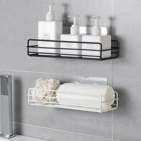 de toilette, ustensiles de cuisine, cadres photo, etc. - Gain de place : cette étagère de salle de bain adhésive peut ranger vos petits objets et elle est fixée au mur, ce qui permet d’économiser considérablement de l’espace dans la salle de bain.