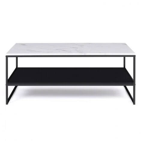 Offrez à votre salon une touche élégante avec notre table basse double plateau ALASKA. Ses lignes sobres et épurées font d’elle un élément de décoration à part entière, qui s’intégrera parfaitement à votre intérieur. Les plateaux en MDF (épaisseur 1,5 cm) aux coloris façon marbre et noir offrent un aspect à la fois intemporel et élégant à votre pièce de vie dans un style bohème chic. Sa structure de forme rectangulaire en métal noir 1,6 x 1,6 cm vous assure stabilité et solidité.Cette table de salon est dotée de 2 plateaux très pratiques aux proportions généreuses qui font d’elle une table fonctionnelle, idéale pour un plateau télé ou un apéro entre amis !Le compartiment ouvert offre un espace de rangement conçu pour recevoir télécommandes, magazines, tablette, et laisser le plateau du dessus libre pour poser votre ordinateur ou votre plateau télé !Faites-vous plaisir grâce à cette table basse double plateau effet marbre et bois noir pas cher !Dimensions de la table basse double plateau ALASKADimensions globales : Longueur 113 cm x largeur 60 cm x Hauteur 45 cmDimensions du compartiment ouvert : L. 113 x l. 60 x H. 22 cmÉpaisseur des tubes en métal : 1,6 cm x 1,6 cmÉpaisseur des plateaux en MDF : 1,5 cmÀ monter soi-mêmeRetrouvez également dans cette collection notre console double ALASKA.Découvrez l’ensemble de notre collection moderne ainsi que toutes nos tables basses sur notre boutique en ligne !