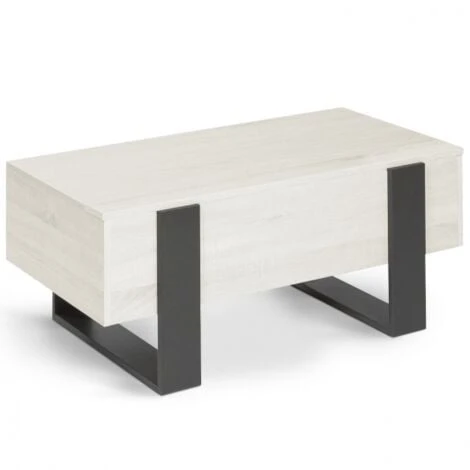 2 en 1, voici la dernière génération de table basse astucieuse avec système de plateau relevable : d’une simple table basse, elle se transforme en table à manger pratique !Son plateau relevable, adaptable à toutes les situations, vous permettra d’organiser un apéritif entre amis, de prendre un repas ou une collation devant la télévision ou encore de vous aménager un coin bureau improvisé tout en gardant une position confortable dans votre canapé. Fonctionnelle, elle offre également une solution de rangement fermé grâce au compartiment situé sous le plateau. Rangez vos revues et télécommandes et gardez un espace libre pour poser vos plateaux télé ou votre ordinateur !Grâce à son mécanisme en acier laqué epoxy noir, le plateau de cette jolie table basse se relève en un clin d’oeil.Son plus : un petit rebord additionnel ouvert sur toute la longueur de la table pour poser téléphone, télécommande ou votre tasse de thé et laisser l’espace du plateau libre pour vos couverts ou votre ordinateur !Une fois fermée avec ses lignes massives et ses couleurs naturelles, cette table basse en bois, au style loft industriel, apportera une touche design à votre intérieur. Esthétique, cette jolie console PHOENIX bois gris trouvera idéalement sa place dans les intérieurs urbains et contemporains, mais aussi plus rustiques.Ses formes simples et symétriques apportent un esprit atelier à votre pièce. Son design sobre, passe-partout lui permettront de s’intégrer dans n’importe quel intérieur sans le surcharger. Ambiance chaleureuse garantie !La structure de cette jolie table basse, massive, en panneau de particules de bois (épaisseur 1,5 cm), est idéale pour un salon cossu. Elle lui confère stabilité et robustesse. La résistance des matériaux assure à votre table basse une excellente durée de vie ! L’association des pieds gris anthracite et du plateau en bois grisé donne un effet bi-matière et apporte modernité et tendance dans votre intérieur.Optez pour l’ingéniosité de cette table basse à plateau relevable en bois : soirées télé réussies assurées ! Pratique et déco, elle apporte une réelle valeur ajoutée.Sublimez votre intérieur avec ses matériaux bruts effet bi-matière, et ses formes simples pour un look authentique !Pratique et déco, cette pièce maîtresse modernisera votre salon ! Dimensions de la table basse plateau relevable loftDimensions globales : Longueur 97,5 cm x largeur 50 cm x Hauteur 40 cmHauteur de la table une fois ouverte : 53,5 cmDimensions de l’espace de rangement : L. 96 x l. 48,5 x H. 12 cmMatériaux : panneaux en particules de bois (PB), épaisseur 1,5 cmColoris : Bois et grisÀ monter soi-mêmeCe modèle de table basse plateau relevable PHOENIX existe en bois et noir et bois effet vieilli. Retrouvez l’ensemble de notre collection moderne sur notre boutique en ligne !
