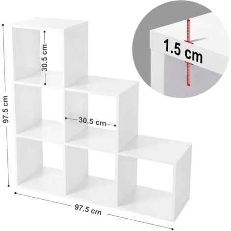 3. FAIT POUR DURER: Panneau d’aggloméré de 15 mm d’épaisseur et chaque cube supporte jusqu’à 15 kg; une sécurité anti-renversement assure plus de stabilité; surface en placage mélaminé, résistant aux rayures et à l’usure.