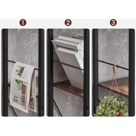 4.Elle est solide et stable : Faite en panneau d’aggloméré de qualité avec un cadre en acier durable, chacun de ses niveaux peut supporter jusqu’à 30 kg. Les tiges à l’arrière et les kits anti-basculement inclus renforcent aussi sa stabilité
