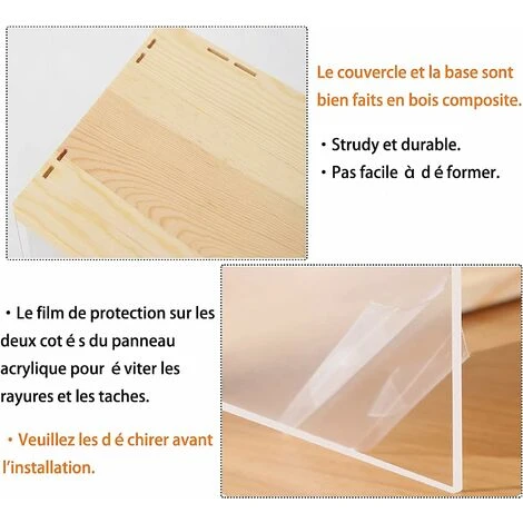 Robuste apr��s assemblage — Il suffit d’assembler les c?t��s, le dessus et la t��te. Aucune colle n’est n��cessaire pour l’assemblage. Vous pouvez construire une vitrine par vous-m��me sans aucun doute. Les bords sont lisses et le bo?tier en acrylique s’adapte parfaitement �� la base. PVC et sans acide.