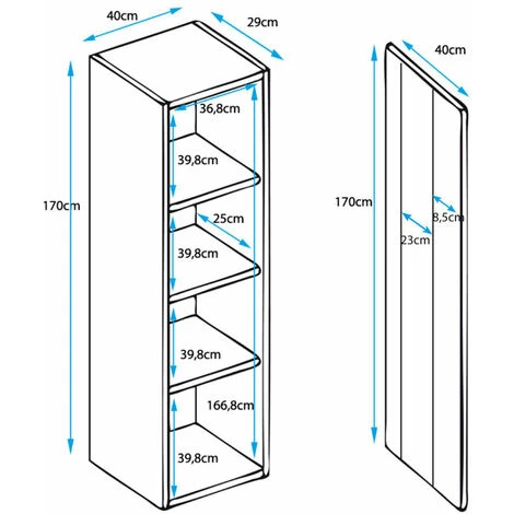 Largeur : 40 cm x Hauteur : 170 cm x Profondeur : 29 cm.
