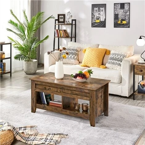 Cette table basse à plateau relevable est un ajout chic et pratique dont le plateau peut être facilement ajusté à une hauteur appropriée et confortable pour utiliser un ordinateur portable, écrire ou dîner assis sur le canapé. Sous le plateau, c’est un grand espace de rangement pour garder les objets utilisés quotidiennement à portée de main et propres. Deux étagères inférieures cloisonnées peuvent ranger des paniers de jouets ou mettre en valeur des objets décoratifs préférés. Recouver d’un revêtement imperméable et d’une quincaillerie en métal robuste, il est facile à nettoyer et la capacité de charge jusqu’à 55 kg au total, la table est solide et robuste pour votre usage quotidien.