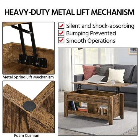 - Polyvalence : Cette table basse à plateau relevable permet de réaliser une variété d’activités : travailler sur votre ordinateur portable, écrire ou dîner assis dans le canapé. Fonctionnelle, elle peut s’imposer dans le salon, le bureau ou un espace restreint